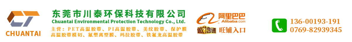東莞市川泰環??萍加邢薰臼且患覍I獨立開發.生產.銷售各種高溫綠色膠帶、高溫紅美紋膠帶、PET氟塑離型膜、冰箱膠帶、高低粘PET保護膜、PI高溫膠帶.PI高溫單面.雙面膠帶.醋酸膠布、PET夾芯雙面膠帶、銅鉑膠帶、鋁鉑膠帶、軟性線路板膠帶、PET薄膜單面(雙面)膠帶、遮噴膠帶等工業膠帶的獨資民營企業。